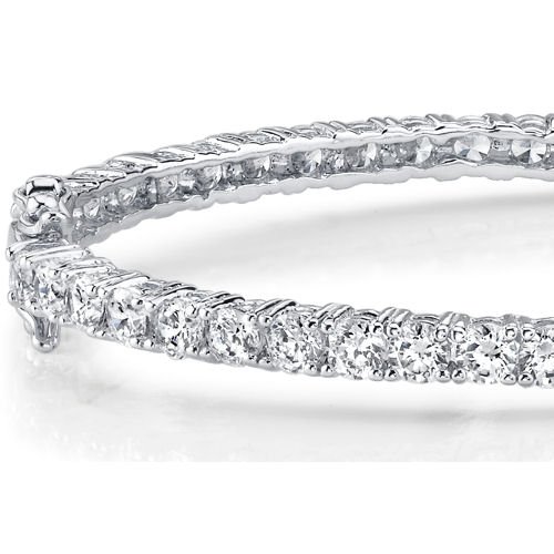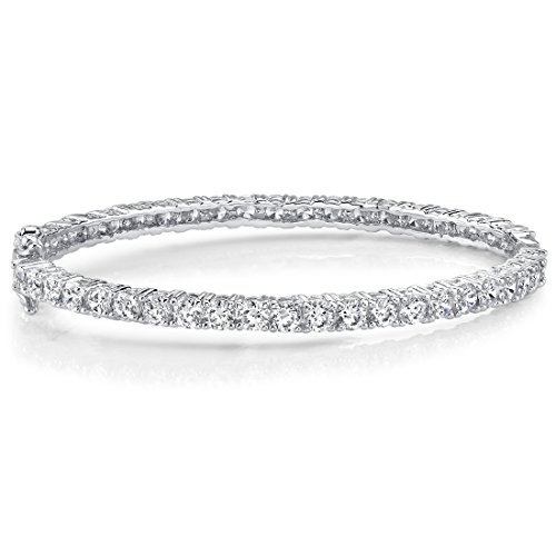 -. Title : Sterling Silver Rhodium Nickel Finish Prong Set CZ Hinged Bangle Bracelet