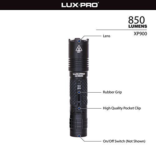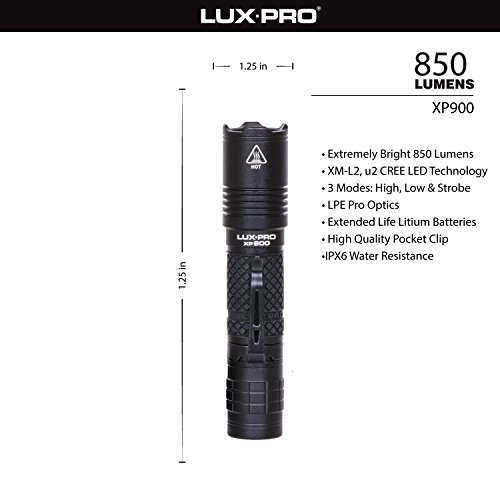 Studio : Sportsman Supply Inc. Publisher : Sportsman Supply Inc. Binding : Sports Product Description XP900C Pro 850 Lumens Flashlight produced with the ultra-bright LED technology. Sleek, high strength aluminum body with rubber grip handle. Button switch on the end for 3 modes: High, Low and Strobe. Operates on 2 CR123a lithium batteries. Flashlight is water resistant. 0