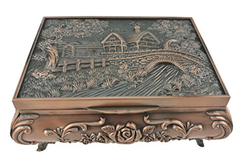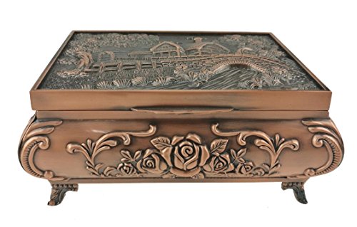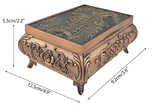 Russian Style Retro Carving Metal Handmade Jewelry Box Case Holder Treasure Storage Box (Cottage, Red Copper)