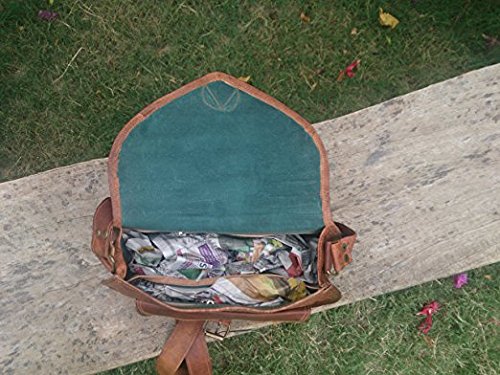 Made from genuine leather and lined with durable olive green canvas this bag is hand crafted by artisans working with leather for decades