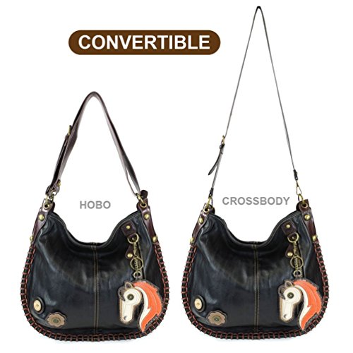 Chala CONVERTIBLE Hobo Large Tote Bag HORSE Vegan Leather BLACK
