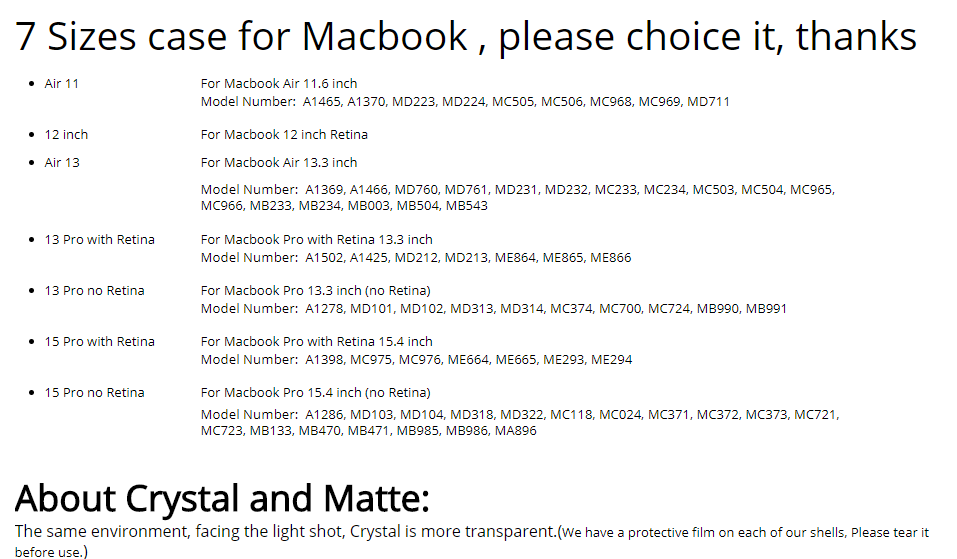 Please Note: this case not fit for 2016 new version Macbook (A1706 / A1707 / A1708), if your laptop is 13.3 inch pro / 15.4 inch pro and model number is A1706 / A1707 / A1708, Please do not buy this product.