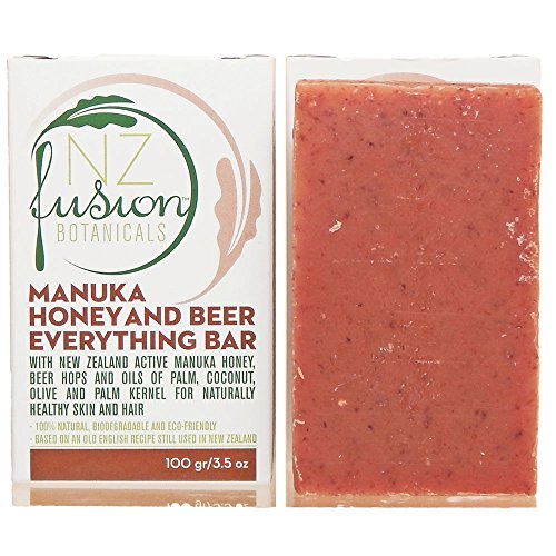 Manuka Honey and Beer Everything Bar 100gr/3.5oz each Set of Two Bars. Shampoo, facial cleanser and skin conditioning bar with Manuka Honey. Also contains beer hops, excellent for both skin and hair. Ous bars do not contain any water, just honey and plant ingredients.