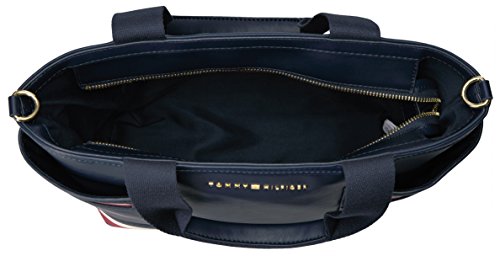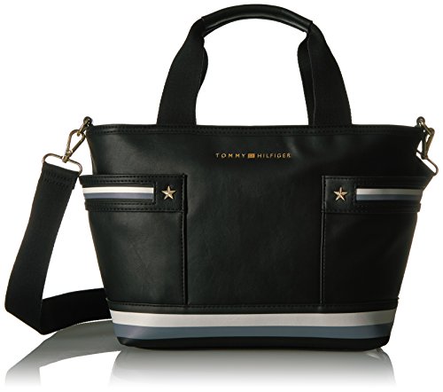 Studio : Tommy Hilfiger Publisher : Tommy Hilfiger Binding : Apparel Product Description Top handle handbags for women featuring the Tommy Hilfiger women signature flag stripe and a convertible shoulder strap. Double handles, convertible shoulder strap with gold hardware details. Double exterior slip pockets, flat bottom, top zip closure. Lined nylon interior with wall zip pocket and slip pocket. This Tommy Hilfiger bag is a versatile essential, perfect for your next work bag. Our timeless Tommy Hilfiger handbag is a stylish addition to your collection of top handle handbags. 13-5/8" length; 8-5/8" height; 3-7/8" width; 5-1/2"(23-1/2") drop. 0