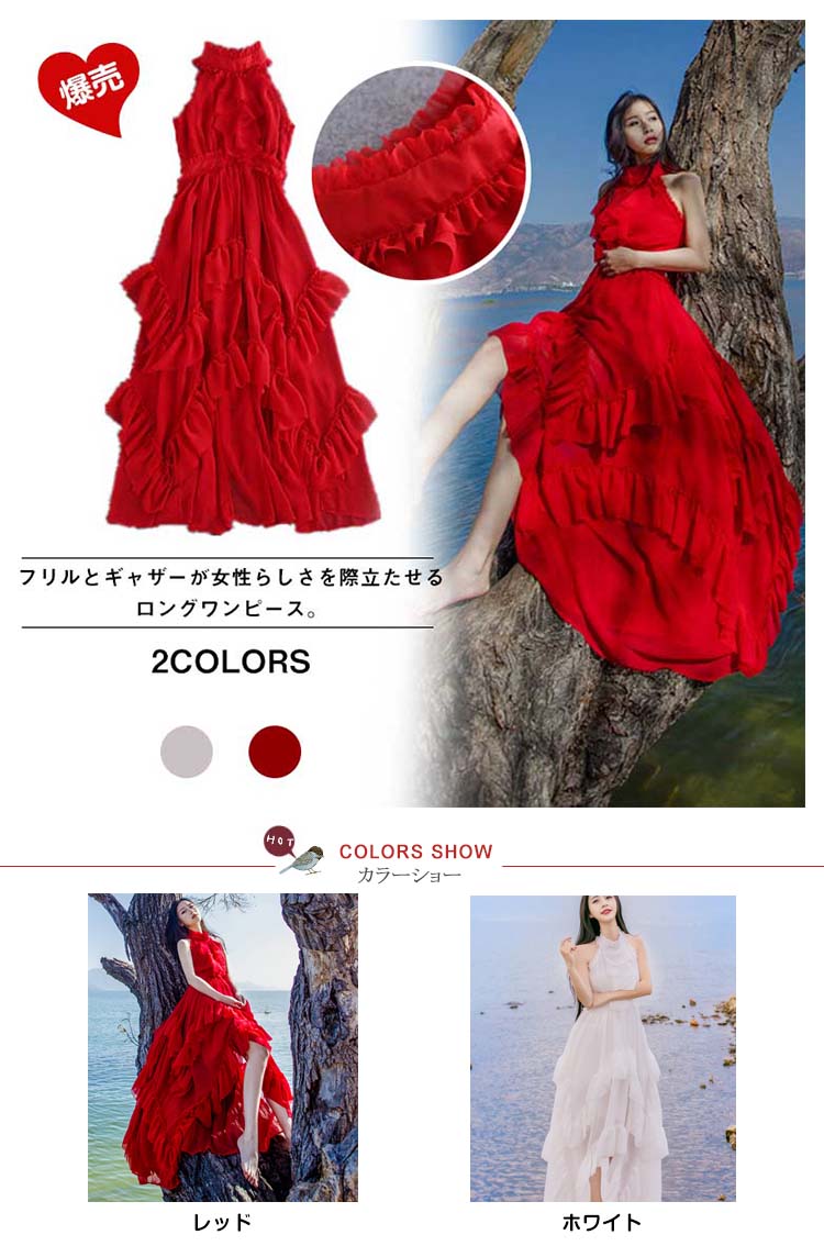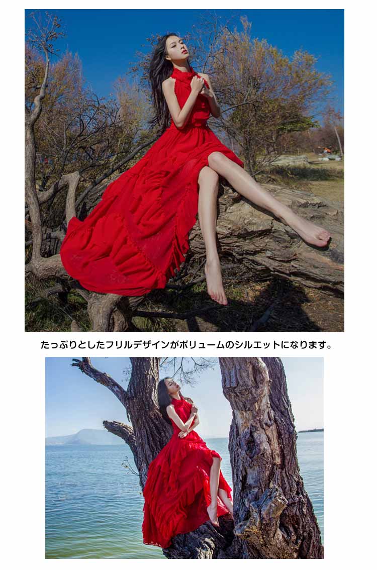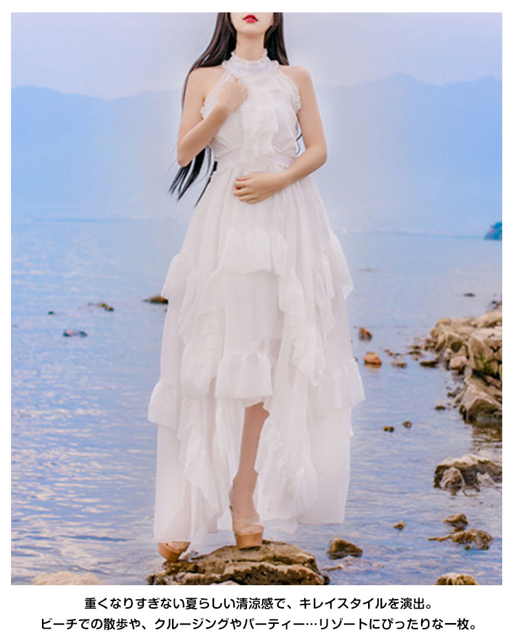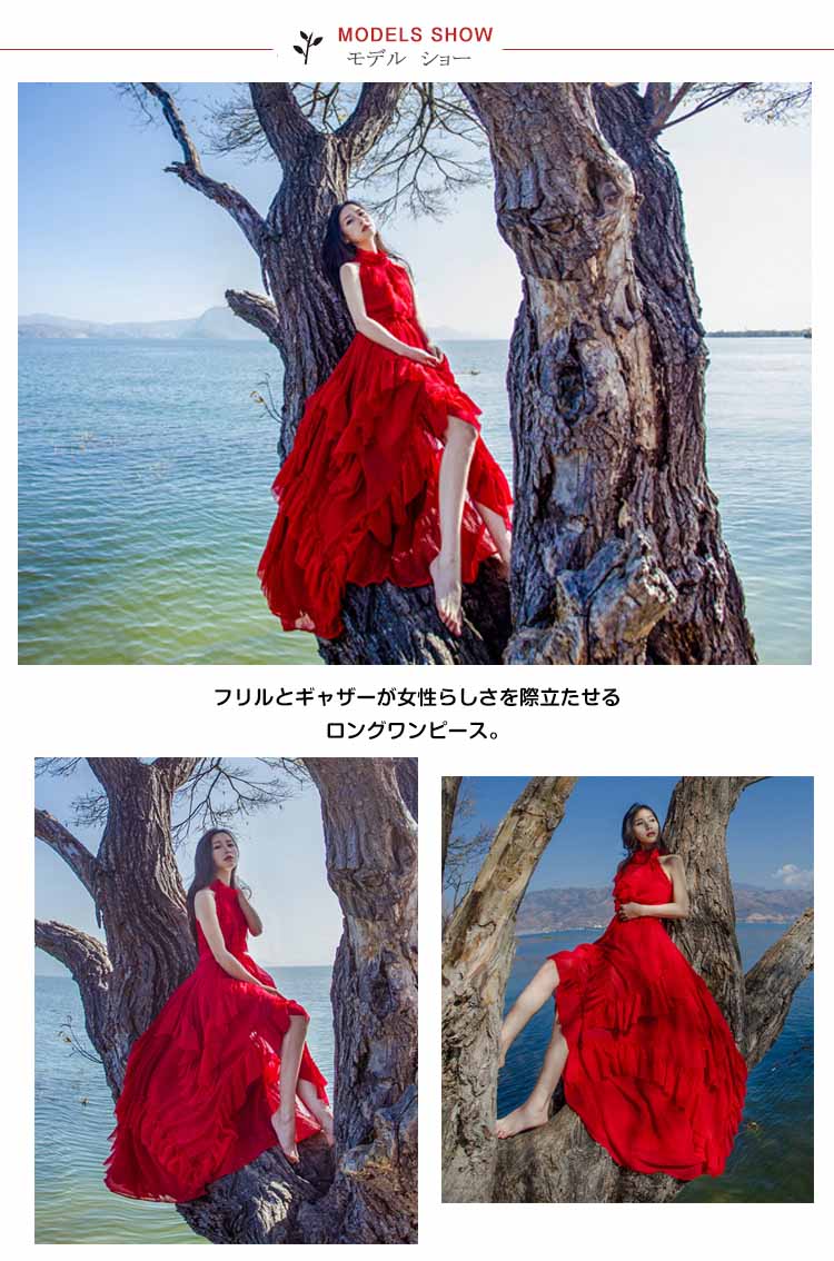 | フリルとギャザーが女性らしさを際立たせるロングワンピース。たっぷりとしたフリルデザインがボリュームのシルエットになります。バランスの良いマキシ丈は足長効果&ボディラインをすっきりと見せてくれます♪重くなりすぎない夏らしい清涼感で、キレイスタイルを演出。ビーチでの散歩や、クルージングやパーティー…リゾートにぴったりな一枚。 | |