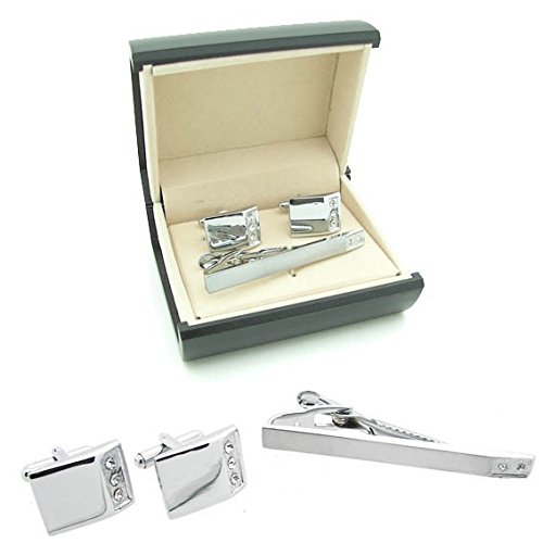 -. Title : 2 Elegante Manschettenknöpfe + Krawattennadel in Box Stahl Silbern Herren Cufflinks Hemd Hochzeit Tunnelstore