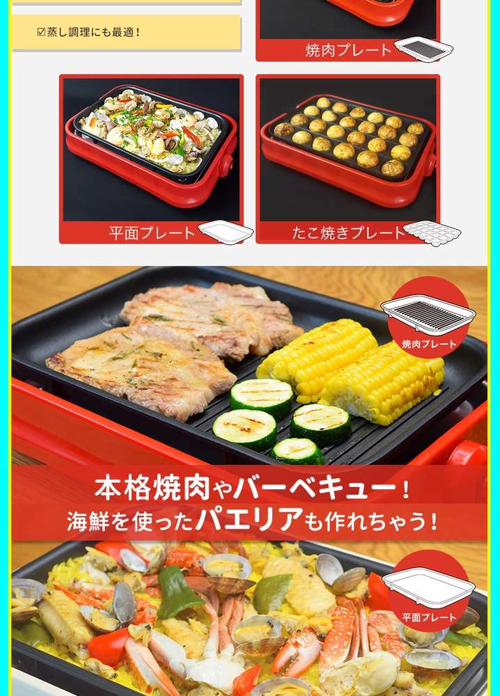 ●本格焼肉やバーベキュー!海鮮を使ったパエリアなどに。たこ焼きも一気に24個作れます