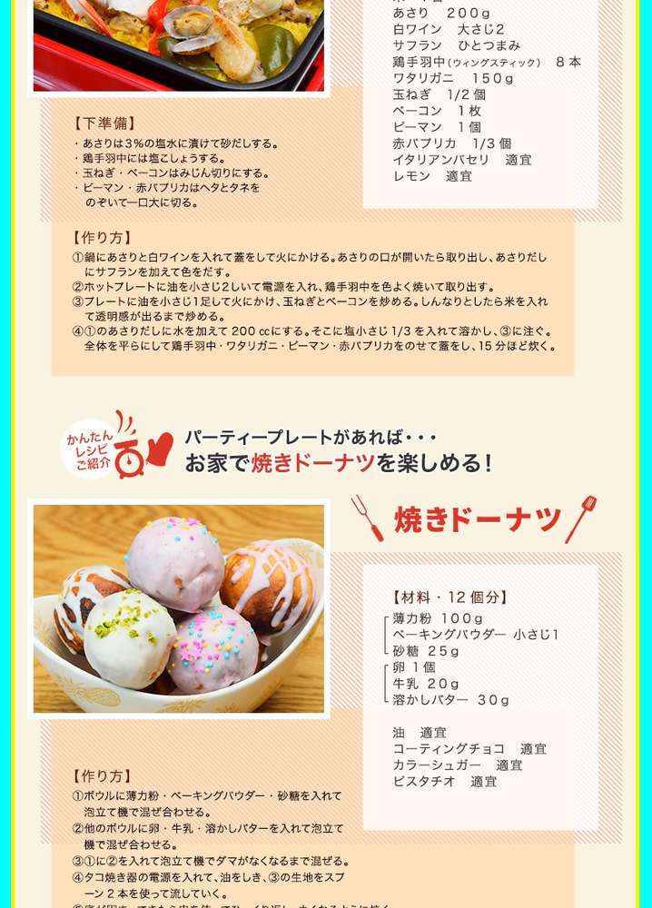 ●パエリア・焼肉・たこ焼き(24個焼き)などが作れる 電気調理器です。