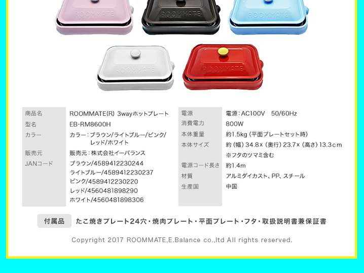 ●セット内容: たこ焼きプレート(24穴)、焼肉プレート、平面プレート