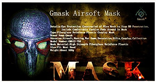 -. Feature : Name: Gmask Knights Templar Airsoft Paintball Mask / Manufacturer Model: GM653-655 / Material: High Strength Fiberglass Reinforce Plastic / Size: Fits most heads / Occasion:Airsoft,Hunting,War Game,Decoration,Gifts,Halloween,Party,Cosplay,Collection ect