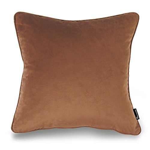 Phantoscope Decorative New Luxury Series Brown Velvet Style with Trim Throw Pillow Case Cushion Cover 18" x 18" 45cm x 45cm