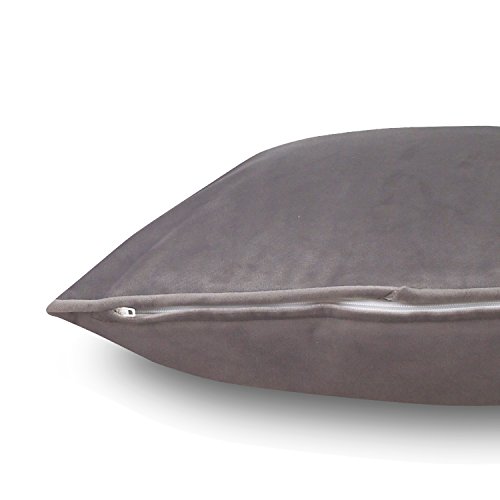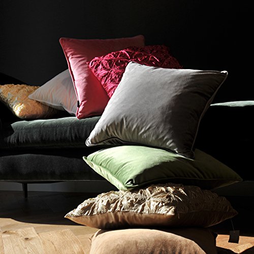 Phantoscope Decorative New Luxury Series Grey Velvet Style with Trim Throw Pillow Case Cushion Cover 18" x 18" 45cm x 45cm