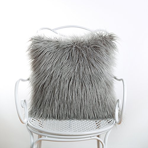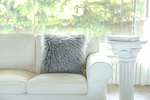 Phantoscope Decorative New Luxury Series Merino Style Grey Fur Throw Pillow Case Cushion Cover 18" x 18" 45cm x 45cm