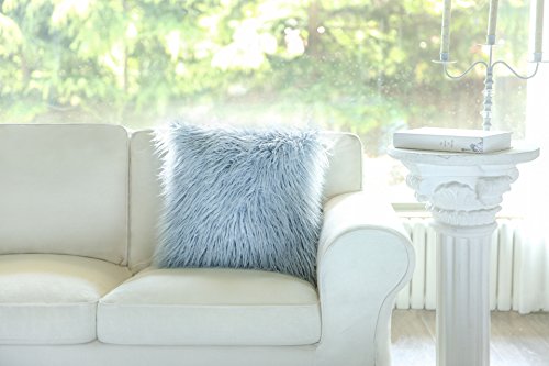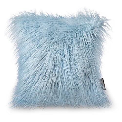 Phantoscope Decorative New Luxury Series Merino Style Light Blue Fur Throw Pillow Case Cushion Cover 18" x 18" 45cm x 45cm