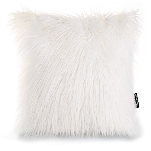 Phantoscope Decorative New Luxury Series Merino Style White Fur Throw Pillow Case Cushion Cover 18" x 18" 45cm x 45cm