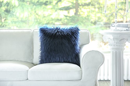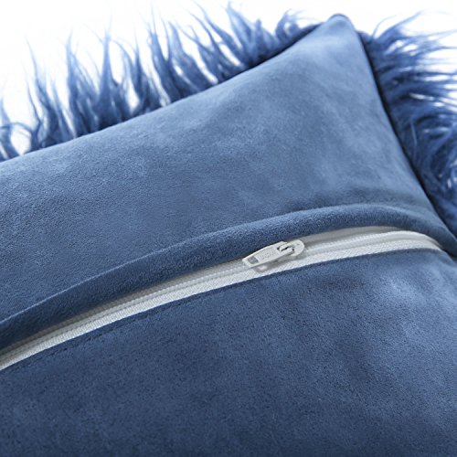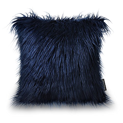 Phantoscope Decorative New Luxury Series Merino Style Navy Blue Fur Throw Pillow Case Cushion Cover 18" x 18" 45cm x 45cm