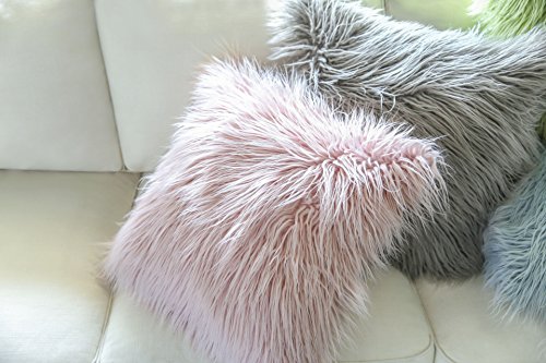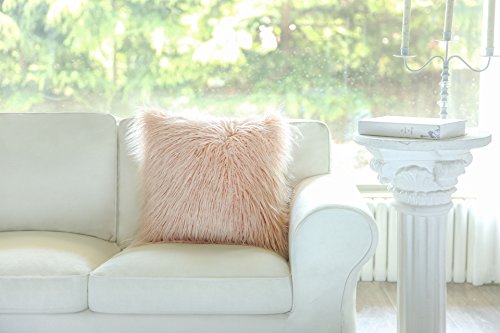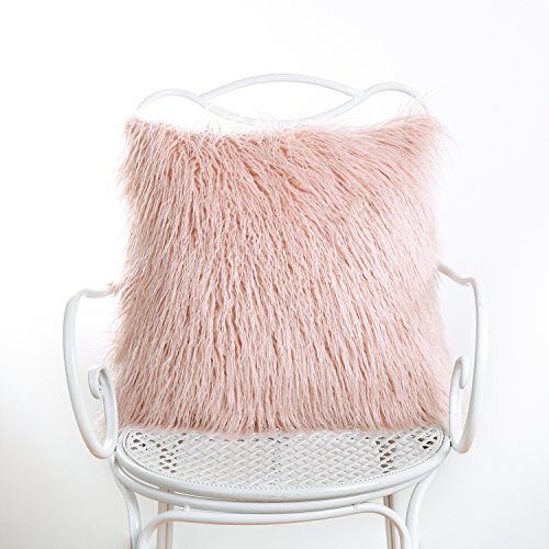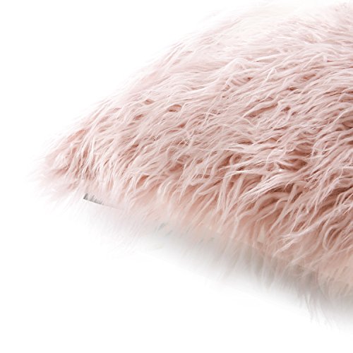 Phantoscope Decorative New Luxury Series Merino Style Pink Fur Throw Pillow Case Cushion Cover 18" x 18" 45cm x 45cm