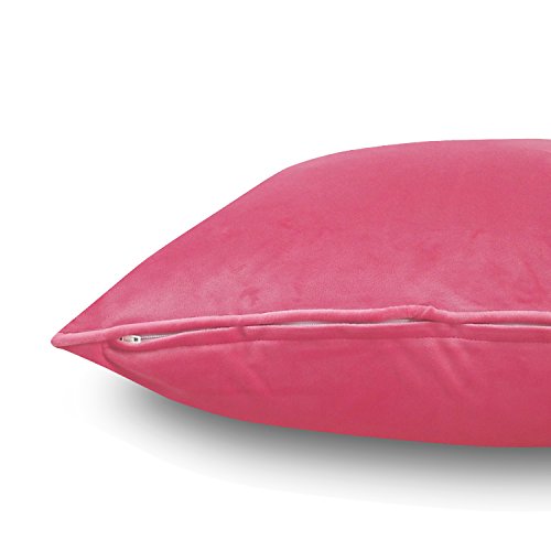 Phantoscope Decorative New Luxury Series Pink Velvet Style with Trim Throw Pillow Case Cushion Cover 18" x 18" 45cm x 45cm