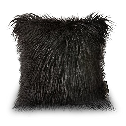 Phantoscope Decorative New Luxury Series Throw Pillow Case Cushion Cover 18" x 18" 45cm x 45cm (Merino Black Fur)