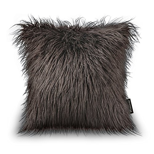 Phantoscope Decorative New Luxury Series Merino Style Coffee Fur Throw Pillow Case Cushion Cover 18" x 18" 45cm x 45cm