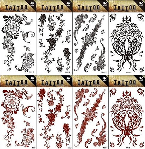 GGSELL GGSELL 8pcs different temporary tattoos designs in one package, it including black and brown Indiana tribal flower tattoo stickers