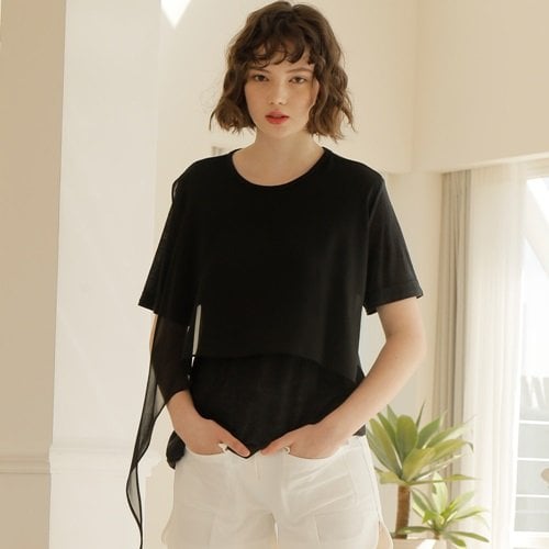와드로브(WARDROBE) UNBALANCE CHIFFON LAYERED T-SHIRTS_BLACK