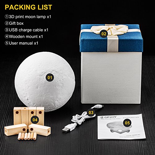 GPJOY 3D Moon Lamp: Using the 3D printing manufacturing technology to reproduce Luna Surface,layer by layer stack, makes it looks just like a true moon you can handing.