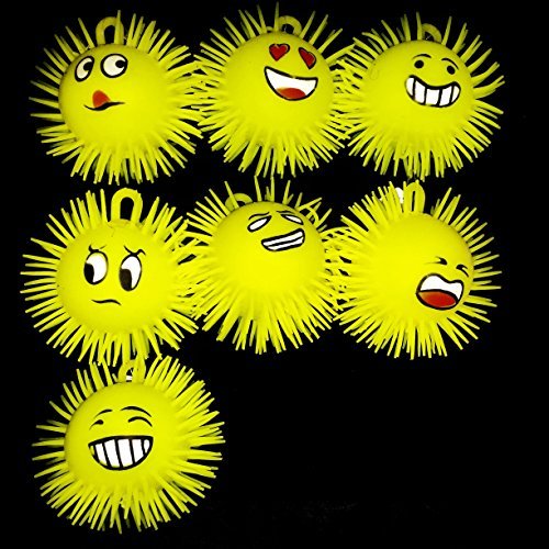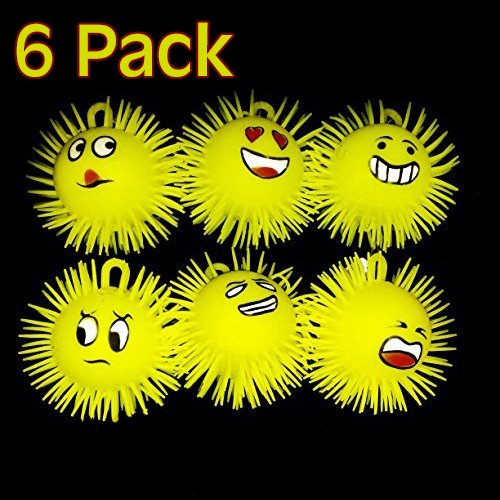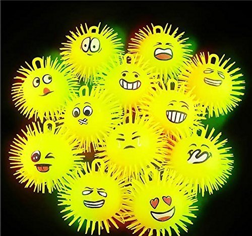 What you get: 6 light up emoji puffer squeeze balls. This collection of puffer balls features a variety of emoticon prints with yellow color & is super-squeezable texture and soft rubbery spikes.