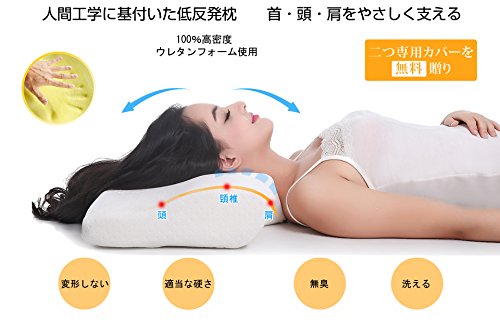 ❤ pillow also "fit!" To the refugees memory foam pillow: fit of the neck, head, shoulder gently supported by low repulsion wash away the fatigue of the brain in sleep. Moderate cushioning property, which is not too subduction head, freely move flexibility features. Foam pillows that can provide a good quality sleep in the hold a sense of non-experience. ❤ health care pillow ergonomic sleep studies: a unique concave three-dimensional form design is firmly head, neck, support the shoulder, uniformly absorbed the body pressure is dispersed. Head is fit in the recess of the center of the urethane foam core, keep the best posture to have a thickness on both sides. Sleep pillow to improve the quality of sleep was fit to sleep next to for even in his back. ❤ need a pillow to sleep comfortable ideal: sideways measures in low back pain lasting, stiff neck, stiff neck, straight neck relief, snoring prevention, cervical spine relaxed, rolling over, shallow sleep, to improve the symptoms such as apnea syndrome. Blood vessels, nerves to not being squeezed, comfortable good sleep bedding to eliminate the fatigue of the cervical spine. ❤ ventilation antibacterial constant temperature of the material: Unlike ordinary urethane foam, since 100% high-density urethane form isothermally materials, even in all seasons, unchanged by the hardness of temperature, yet because it is odorless, unique help to healthy sleep sleep pillows plump soft dough temperature storage technology. ❤ an exclusive summer and winter 2 case gift: with fabric only pillow Kaaba not scratchy wrapped in the comfort of outstanding experience! Ventilation antibacterial, fit to gently skin as underwear! Cover is removable washable OK! As birthday and Christmas gifts, a person of your choice, family, memory foam pillow of the best three-dimensional structure to a friend