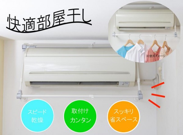 ご家庭のエアコンに掛けるだけの簡単設置。エアコンの風を利用して洗濯物を乾かすことができるスグレモノです。