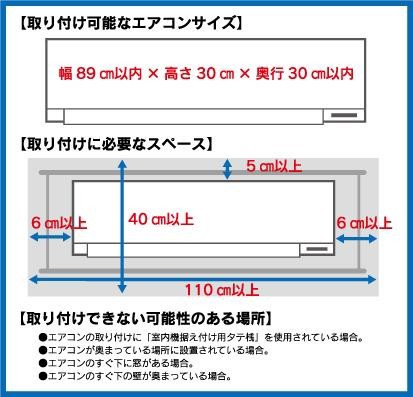 仕様対応エアコンサイズ:(W)~89cm×(D)~30cm×(H)~30cm以内