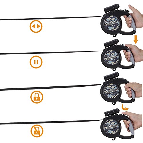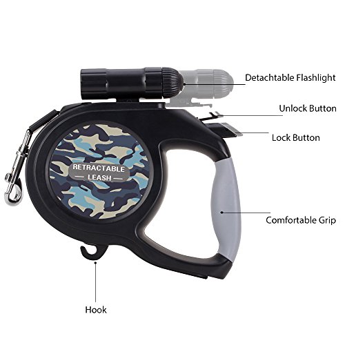 Studio : SlowTon Publisher : SlowTon Binding : Misc. Product Description Outstanding features of the SlowTon Retractable Dog Leash: High quality: The retractable leash adapts corrosion resistant ABS TPE plastic and sturdy polyester tape and scrupulous details disposal, and ergonomic handle grip design fit hands better when handing it. Flexible and smooth extending and contracting function: An internal stainless steel mechanism included makes it flex smoothly and noiselessly, which could prevent it from stuck, and the length of the tape can be optionally adjusted as you like to control the acting range of the pets and prevent hurting by tape. Better safety assurance: An extra 9 LED detachable flashlight is added to track conveniently when walking dogs at night so that the pets are in the line of sights at any time, which could give a better safety. Why choose the SlowTon Retractable Dog Leash: 1. SlowTon has long focused on the high quality of products and customer experience over time and we have a strong team who will endeavor to offer superior after-sales service. We welcome you here all the time! 2. Best design, top quality and convenience give comfortable and enjoyable experience with your pets at any time. Specification: 16ft - Dogs up to 70 lbs option: Item size: 7.3 x 7.3 x 1.6 inches Tape length: 16.4ft Shipping Weight: 0.96lb Color: Khaki 26ft - Dogs up to 110 lbs option: Item size: 8.3 x 8.3 x 1.6 inches Tape length: 26.2ft Shipping Weight: 1.3lb Color: black Warm Tips: The retractable leash is suitable for the dogs under 70lbs. The internal retractable tape cannot be replaced. Do not pull the tape directly to avoid being hurt. Package list: 1 x Retractable leash