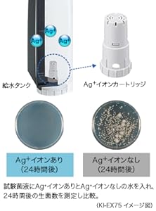 キレイな水で加湿、Ag+ イオンカートリッジ タンクのキャップに簡単装着できる「Ag⁺イオンカートリッジ」で、タンクやトレーのぬめりやニオイの原因となる水中の菌を抑制。1年に1回の交換でキレイが続きます。(※) ※ 1 日平均2.5L の水を使用した場合(総使用量900L が交換の目安です)。水質、使用環境によっては交換時期が早くなることがあります。また、実使用環境での実証結果ではありません。 |