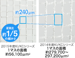 ホコリブロックプレフィルター 目の細かいフィルターで、内部に侵入するホコリを大幅に低減し、集じん性能の低下を抑えます。極細の糸を採用しているので、空気を吸い込む面積は従来と同じです。 |