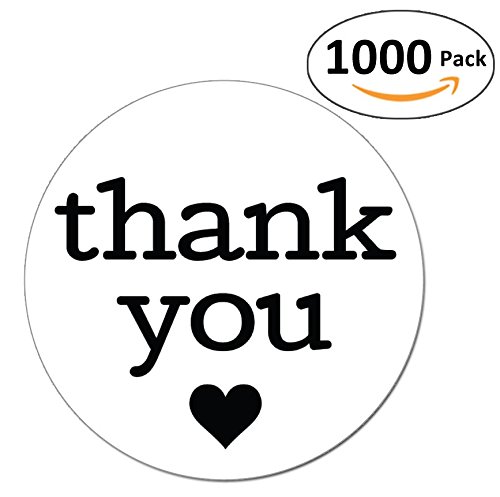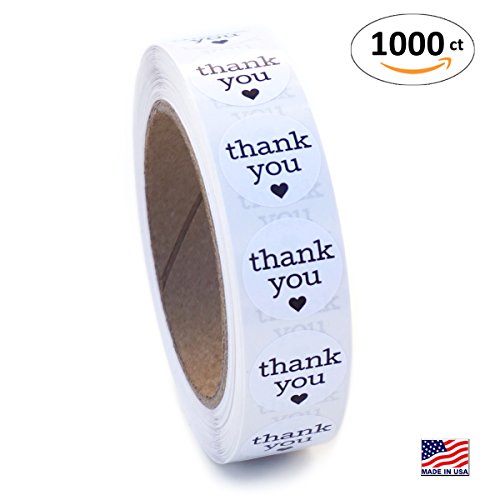 1 Inch Round Thank You Labels with Black Hearts, 1000 Stickers per Roll