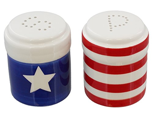 Patriotic USA Flag Salt and Pepper Shaker Set - Large Red White and Blue