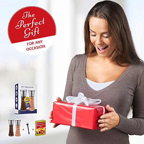 A MUST-HAVE ON YOUR HOLIDAYS GIFT LIST- 100% RISK-FREE GUARANTEE; Salt and Pepper Grinders bundled with eBook(note: PDF file emailed to you) and Utility Brush to clean the rotor and avoid clogs (also can clean keyboards, TV remote, Jewelries etc.) If you are looking for Mother's Day, Christmas, Housewarming or Wedding Gift this is what you need! Our pair of mills work great, look great, easy to clean, easy to operate, easy to adjust & easy to refill.