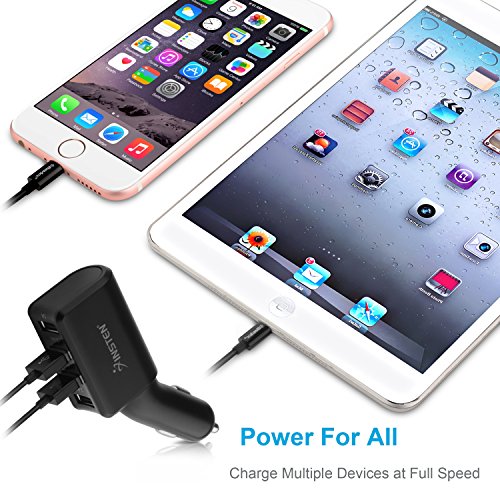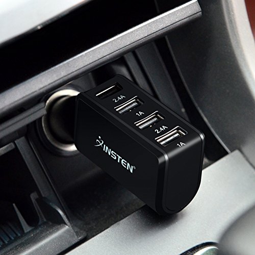 -. Feature : Cassette-shaped Interface inserts into your car's tape deck. Mini-plug inserts into your iPod / CD Player / MiniDisk Player headphone jack / Four USB port to charge four devices at one time. Powerful 6.8A output shared by four ports (2.4A+2.4A+1A+1A). Can be used to charge mobile phones, iPad, mp3, eBook, game consoles, etc.