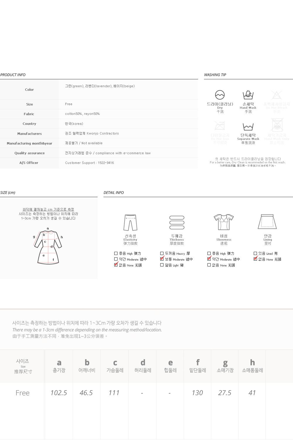 피팅 컬러와 사이즈는 그린, Free 입니다