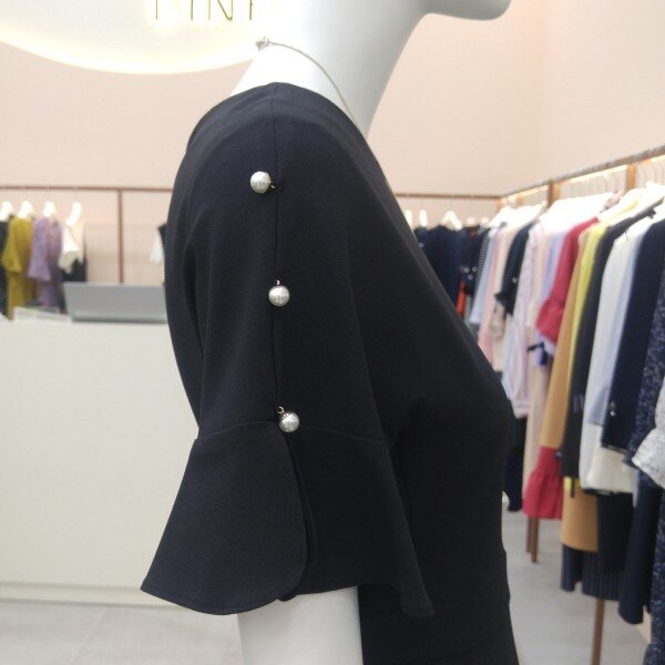 나그랑어깨패턴으로 편안한 착용감과 트임소매에 진주장식포인트로 우아함을 살린 플레어원피스입니다. 살짝 깊게 파인 ?선이 세련되어 보입니다.