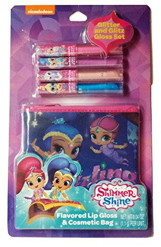 -. Binding : Misc. -. Brand : Shimmer and Shine -. EAN : 6912782020098 -. Feature : Featuring 4 lip glosses with a hint of glitter in fruity flavors, giving little ladies a range of flavorful options. / Nickelodeon Shimer and Shine Glitter and Glitz Gloss Set. / Sparkly Lip Gloss Comes in 4 Bright Colors; Cotton Candy, Bubble Gum, Vanilla Cupcake and Raspberry. Each tube contains a roll-on applicator and each one is uniquely flavored. / Also includes mini Cosmetic Bag. / Glitter and sparkle up that beautiful smile. -. IsAdultProduct : 0 -. Label : Taste Beauty -. Manufacturer : Taste Beauty -. MPN : SS -. PartNumber : SS -. ProductGroup : Beauty -. ProductTypeName : BEAUTY -. Publisher : Taste Beauty -. Studio : Taste Beauty -. Title : Flavor,Glitter, and Glitz Lips with Shimmer and Shine Lip Gloss & Cosmetic Bag 5 Piece Gift Set