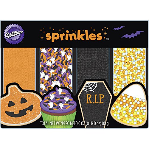 Studio : Wilton Publisher : Wilton Binding : Kitchen Product Description Decorate cookies, cupcakes and other treats using this 4-Pack Halloween Sprinkles Set. Mix and match Halloween sprinkles include: orange sugar, ghost mix, black sugar and candy corn colored mix nonpareils. Total net weight: 17.2 oz. (490 g). 0