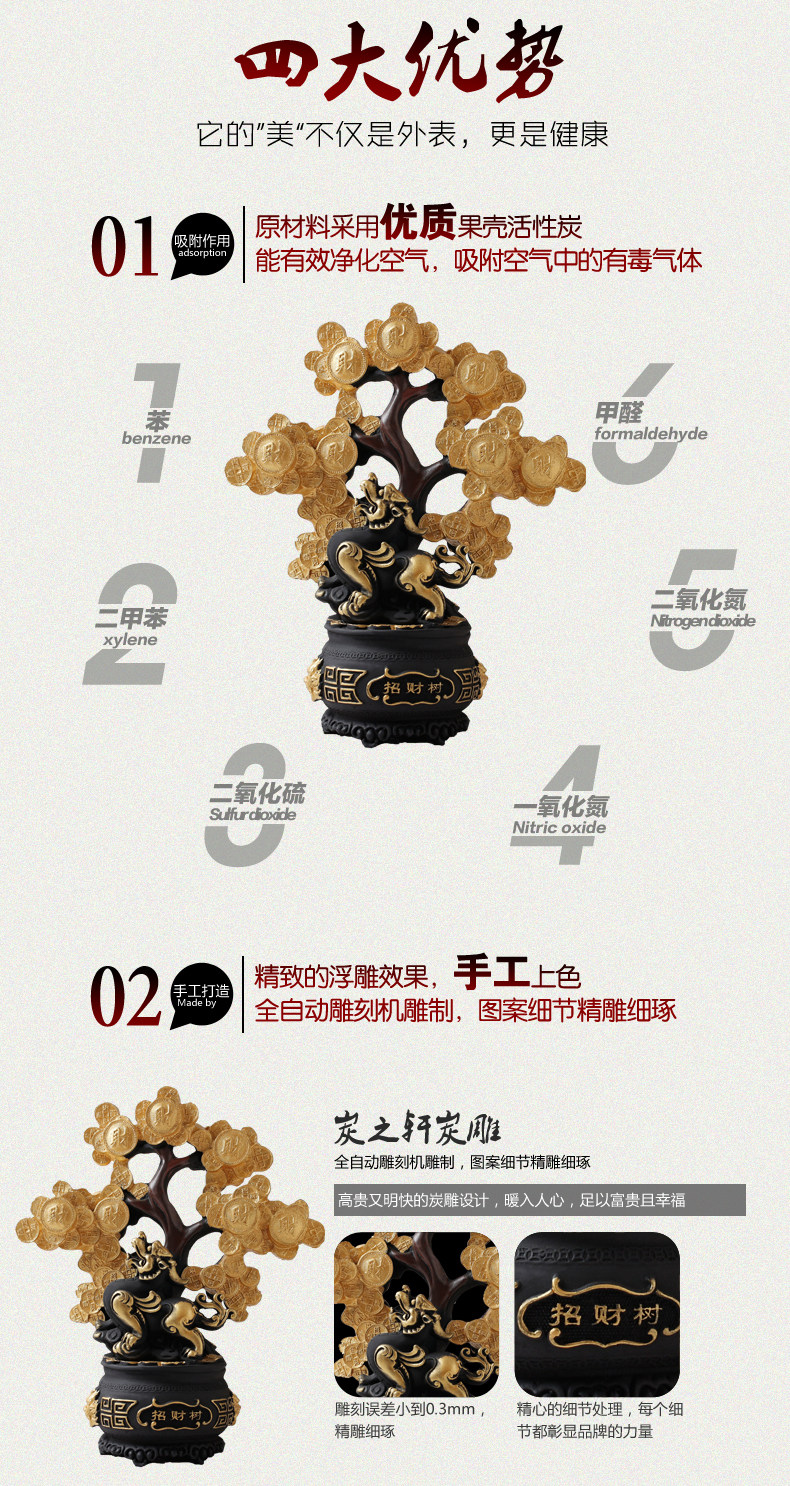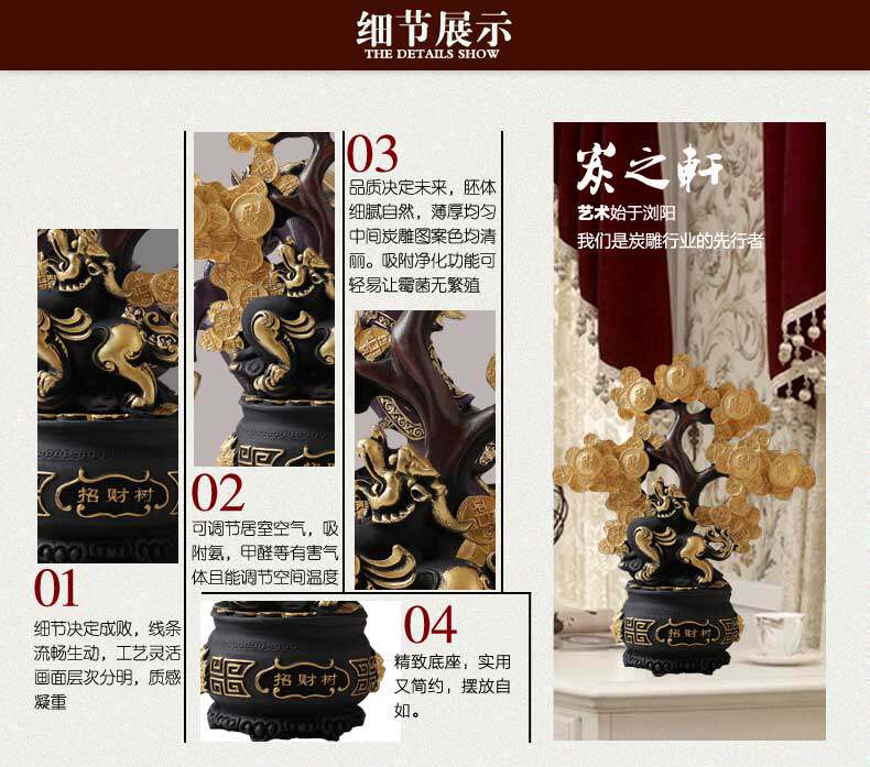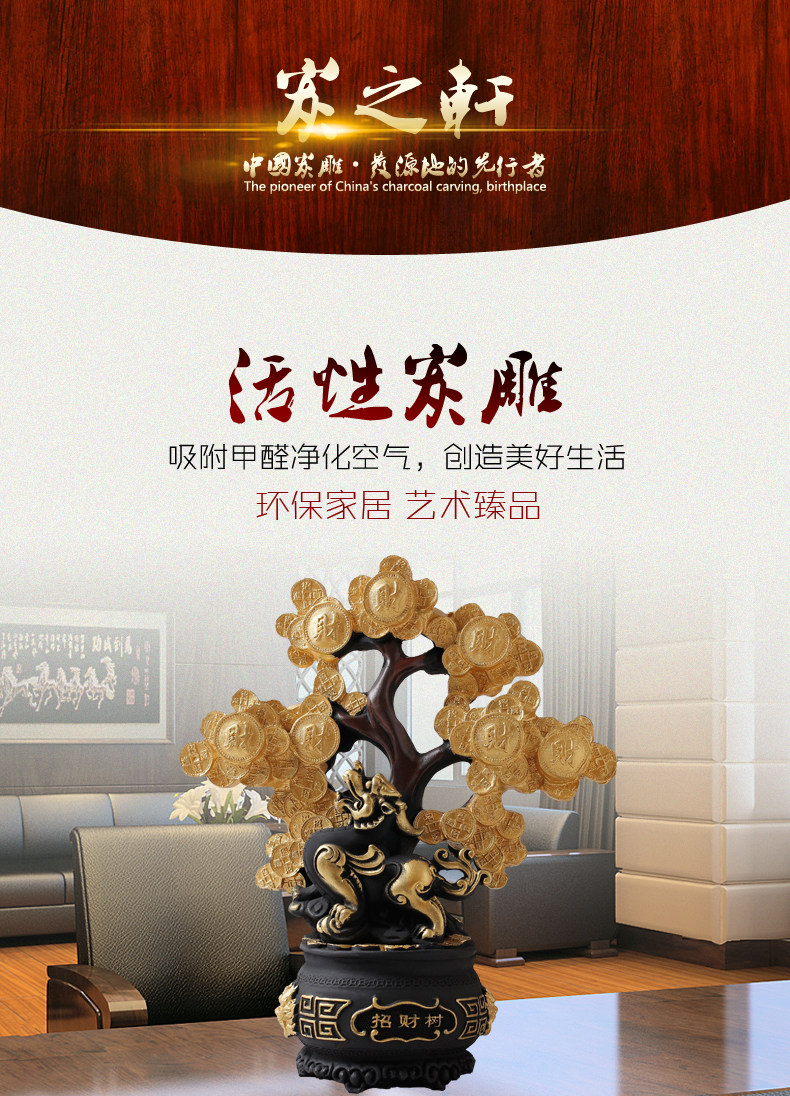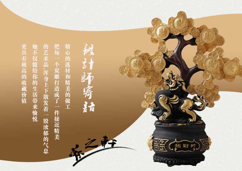 炭雕工艺品摇钱树招财发财摆件客厅装饰品公司开张店铺开业礼品