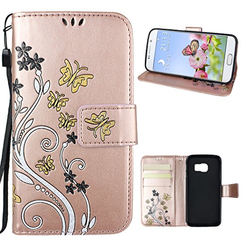 -. Title : Galaxy S6 Edge Case, Samsung Galaxy S6 Edge Wallet Case, Rosa Schleife PU Leather Butterfly Flower Embossed Floral Flip Phone Case Protective Case Cover for for Samsung Galaxy S6 Edge G9250 (5.1")