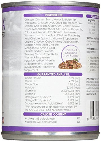 Nutrisca Stew Recipe canned food is made from high quality, responsibly-sourced meats and wholesome, natural ingredients. Potato-free, grain free tapioca free recipes for a healthy diet. Stew formulas with unique slices and visible chunks of vegetables. Low glycemic peas and chickpeas provide better digestibility for sustained energy. High quality meat is the FIRST ingredient. Packed with antioxidants and chelated minerals for better nutrient absorption. Featuring seven premium fruits and vegetables: peas, chickpeas, carrots, cranberries, blueberries, tomatoes and spinach. NO gluten, soy, corn, wheat, flour, ethoxyquin, BHA/BHT, rendered poultry, artificial colors, flavors or preservatives.