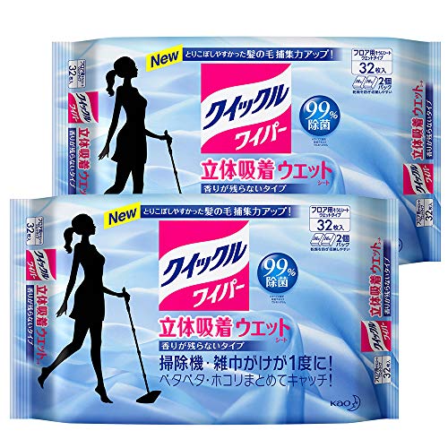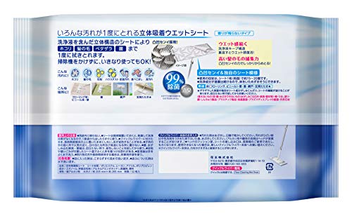 タフなウエット、1枚で広々サッパリ。洗浄液を含んだ、フローリングやビニール床用おそうじシート。