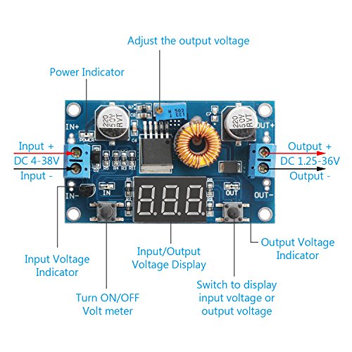 DROK DC-DC Buck Converter Regulator 4-38V to 1.25-36V 5V/12V Power Supply Module 5A, LED Voltmeter Display
