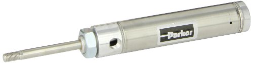 Parker 1.06RSR02.0 Stainless Steel Air Cylinder, Round Body, Single Acting, Spring Extend, Nose Mount, Non-cushioned, 1-1/16 inches Bore, 2 inches Stroke, 5/16 inches Rod OD, 1/8" NPT Port
