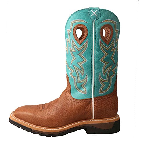 Studio : Twisted X Publisher : Twisted X Binding : Apparel Product Description Mens Twisted X Work Boots: Mens Western Work Boots. Check off your work list for the day faster in these men's lite cowboy steel toe leather work boots from Twisted X 's Work collection. Featuring Twisted X Technology that includes a machine washable, antibacterial, moisture wicking footbed, an XSD?Insole, flexible one-piece insole with integrated composite sandwich shank for maximum stability and a slip resistant 60K genuine super slab rubber outsole. They have a narrow wide square toe, a block heel and a 12 inch shaft with stitching details and tear drop pull holes. All Steel Toe Meets Exceeds?ANSI Z41 PT99 I75 C75, ASTM F2413-05 I75 C75. Twisted X run a half size large, order a half size smaller than normal. MLCS020 0