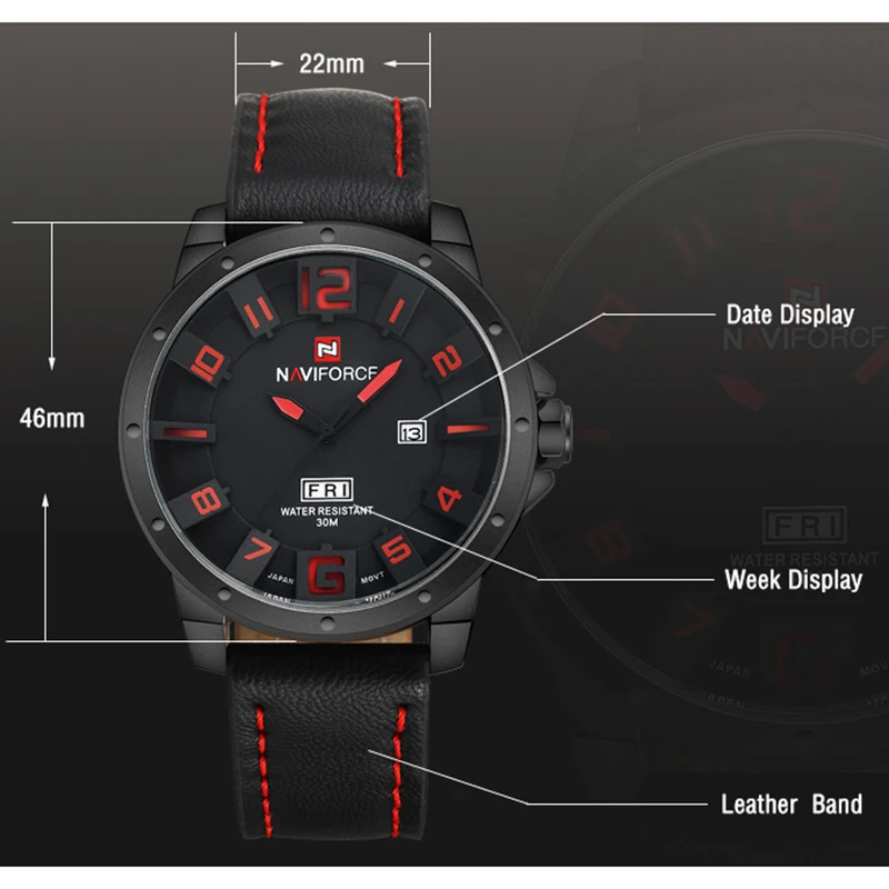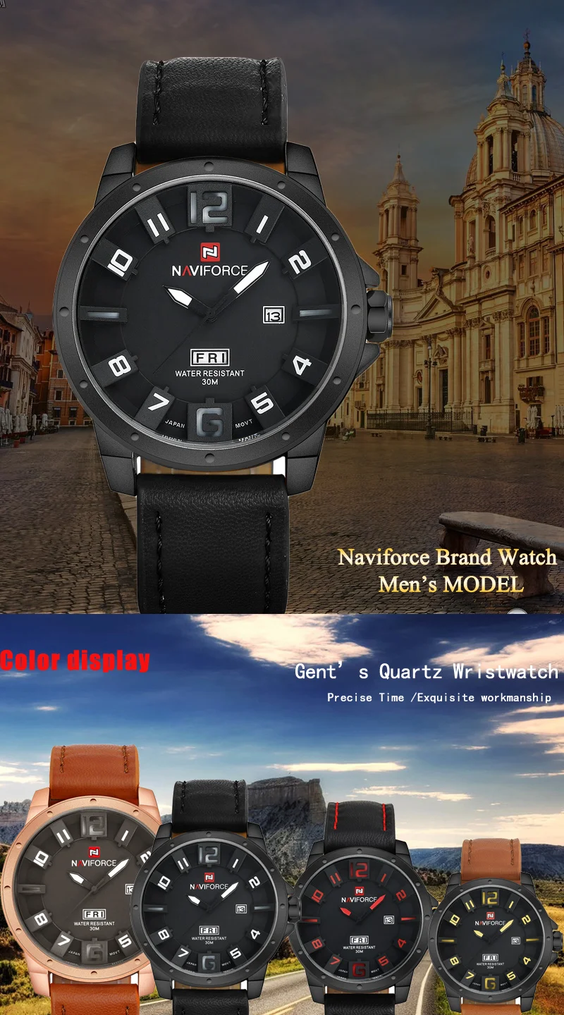 NAVIFORCE Watches:Leather quartz Watch